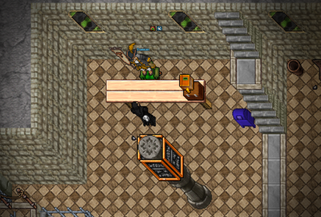 2. Go down the stairs, and go left to NPC Damian. Say to him, Hi, Woodlum town, Yes.